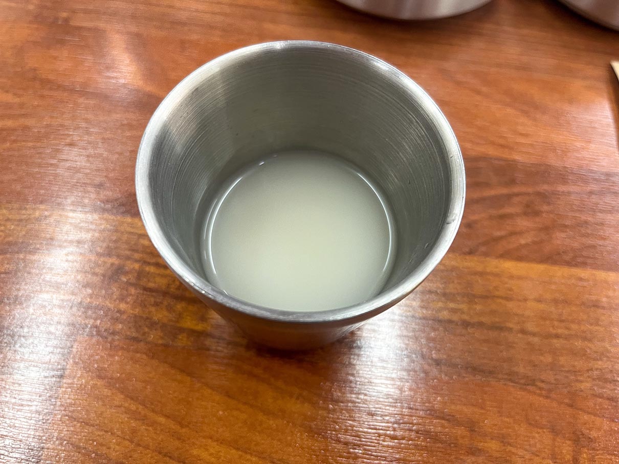 따뜻한 육수는 셀프로 제공됩니다. 이 부분도 좋았습니다. 밀면이든 냉면이든 따뜻한 육수 한 모금하는 그 맛과 기분이 있잖아요? 다만 맛은 꽤 싱겁달까요, 썩 대단치 못해서 아쉬웠습니다.