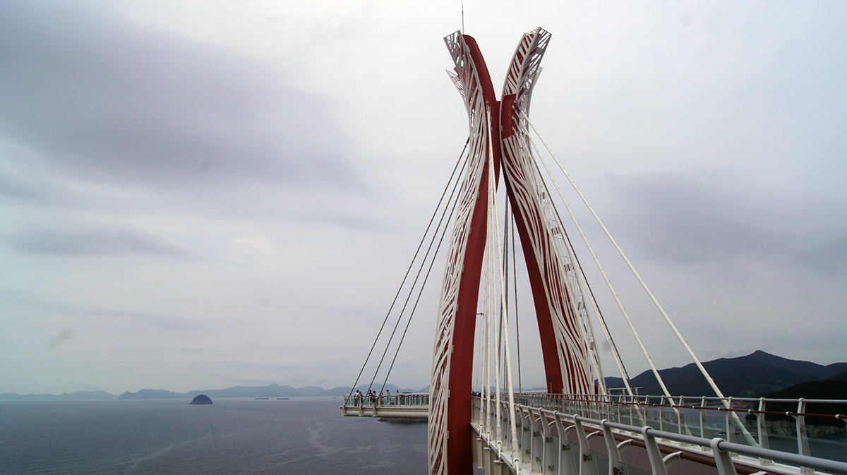 설리 스카이워크. 설리는 지명입니다. 설리에 있는 스카이워크 인거죠. 다리의 높이가 38m라고 합니다. 저기서 바다 방향으로 그네를 탈 수 있어서 사진 찍기 좋아 유명합니다. 그네에서는 바다경관과 보리암이 있는 금산을 볼 수 있습니다.