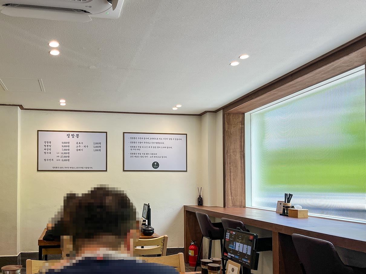 내부 모습입니다. 홀은 꽤 넓은 편입니다. 중앙에는 공깃밥이 있는 온장고와 카운터가 있고요, 안쪽에는 혼밥 할 수 있는 좌석이 창가 쪽으로 한 줄 있습니다.