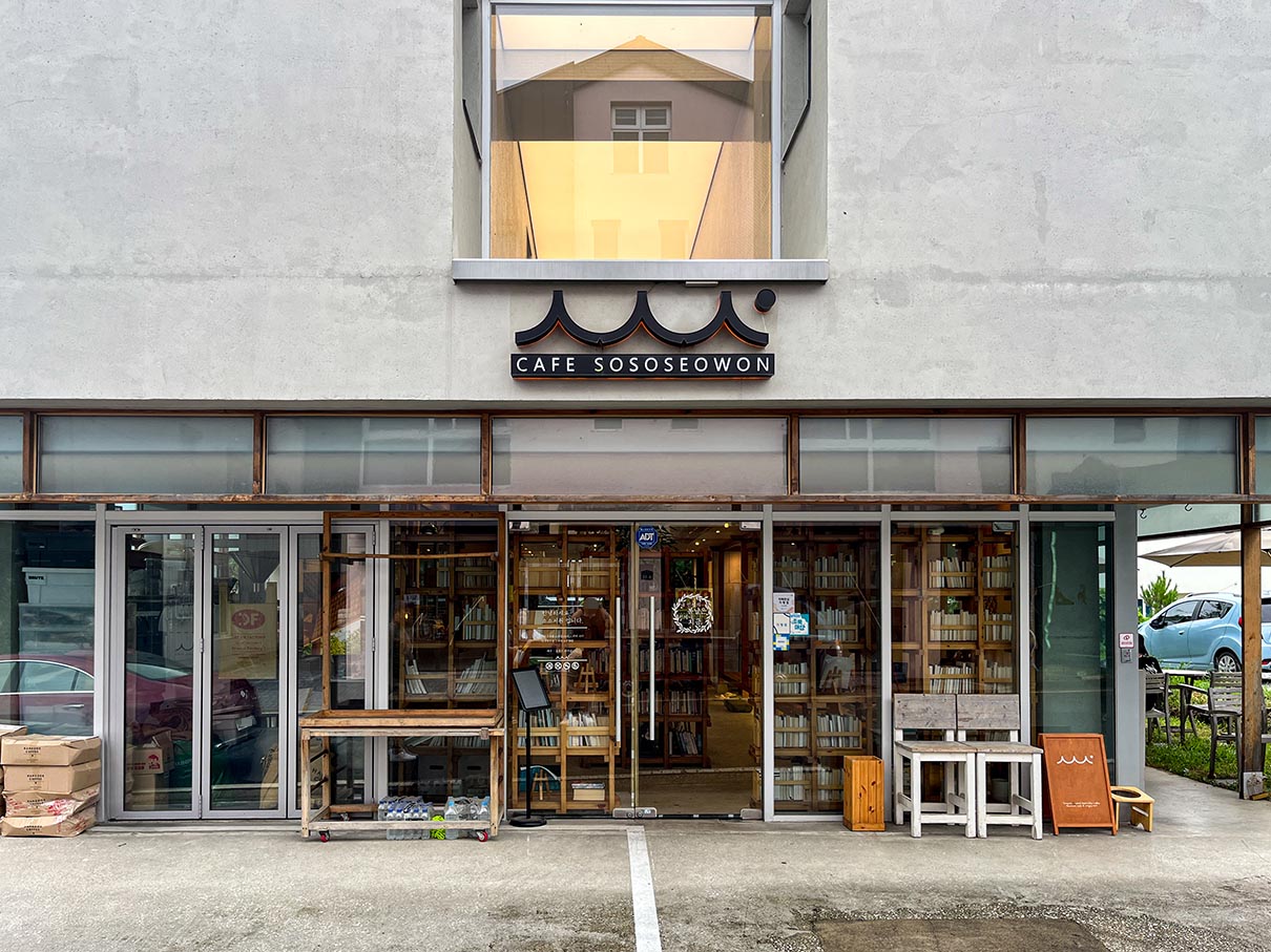 소소서원 입구입니다. 유리벽 너머로 많은 책들이 꽂혀있는 책장들이 눈길을 사로잡습니다. 왼쪽 편은 원두를 저장하는 공간인 듯했습니다. 로스팅도 직접 하는 것 같았는데 정확히 확인해보진 않았습니다.