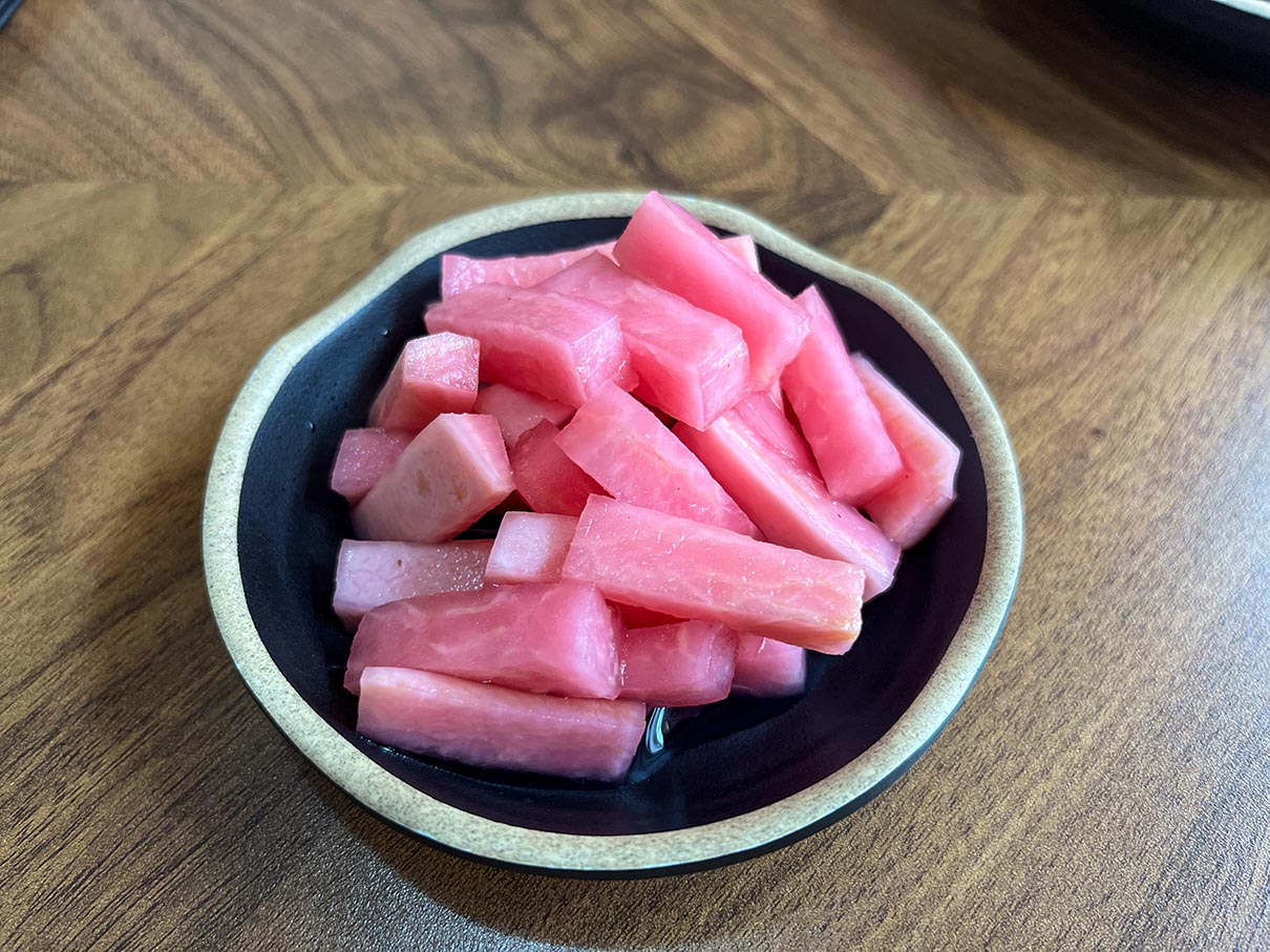 커틀러리와 휴지는 테이블의 서랍을 열면 있습니다. 피클은 예쁘게 핑크색으로 물들어있는데 신맛이 강하지 않아서 그냥 먹기에도 맛이 좋았고 먹다 보면 느끼해지는 파스타와 리소토와도 잘 어울렸습니다.