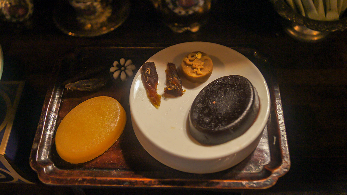 촌집플레이트, 즉 양갱, 다식, 도라지정과입니다.
