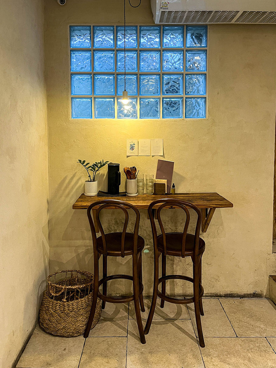 그리고 제일 안쪽 구석에는 벽을 바라보는 2인석이 하나 있습니다. 화장실로 향하는 통로 옆이고 테이블이 조금 좁아 보였습니다.