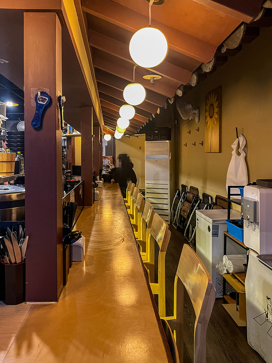 모든 좌석은 카운터를 바라보는 바 형태로 되어있습니다. 라멘집이나 이자카야 같은 느낌이 듭니다.