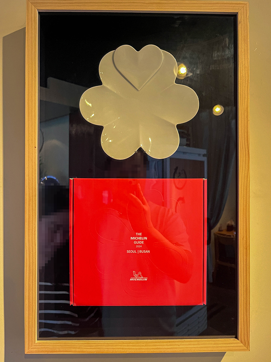 블루리본이 잔뜩 붙어있습니다. 그럴만한 곳이라고 생각합니다. 붉은색의 미슐랭 인증도 눈에 띄네요. 카운터에도 잔뜩 붙어있고요.
