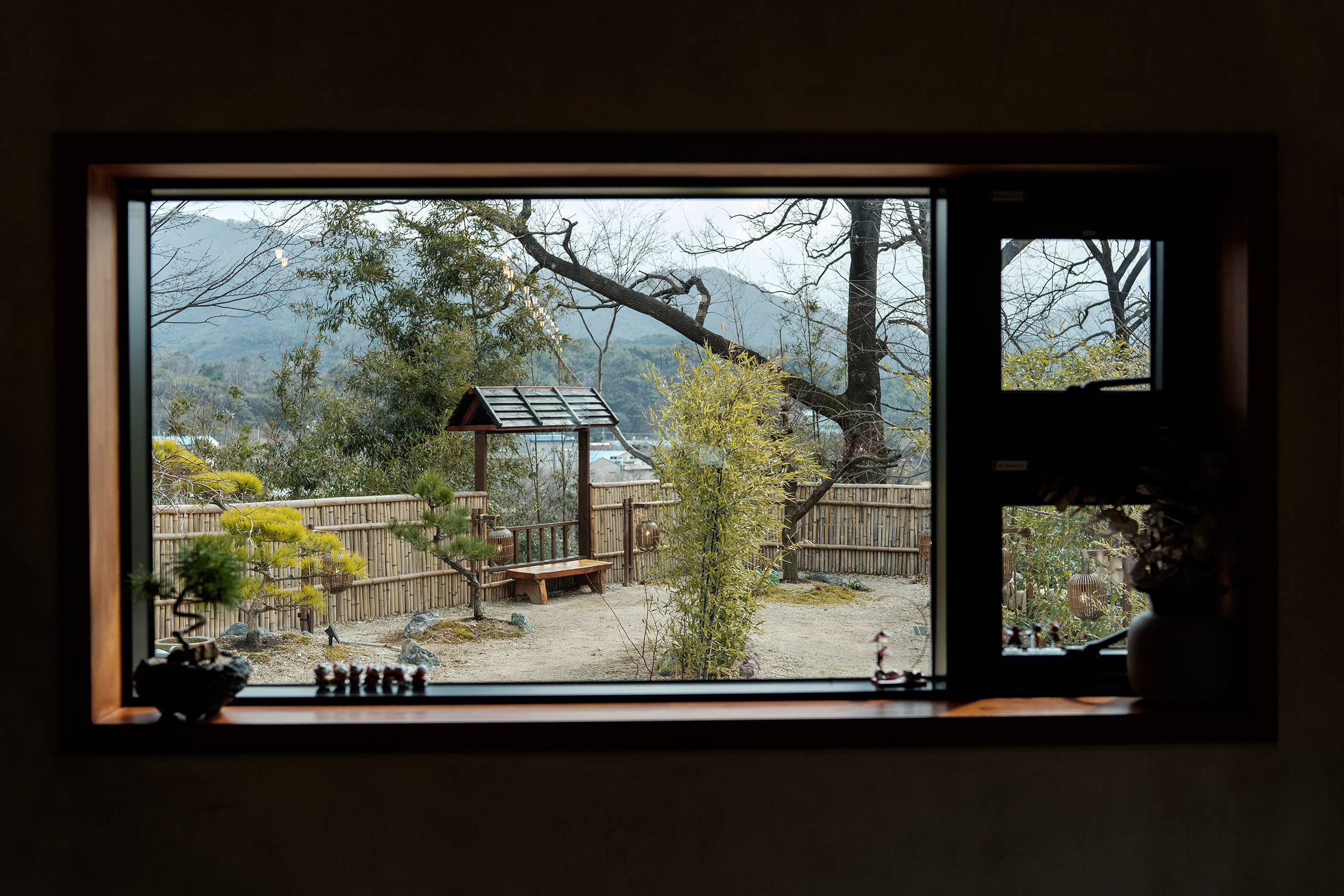 가게 옆으로는 커다란 창이 있어 바깥을 볼 수 있습니다. 창을 통해 바라보는 정원도 매력이 있습니다.