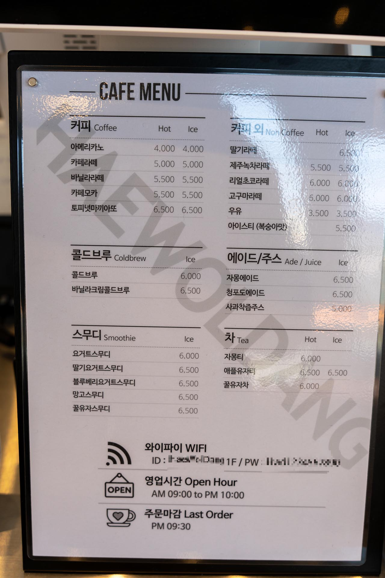 음료 메뉴 가격표입니다. 참고하시고요, 저기에 없는 메뉴도 있습니다. 샤인머스캣 주스라든지. 어떤 빵들을 파는지 아래 사진들을 보시죠.