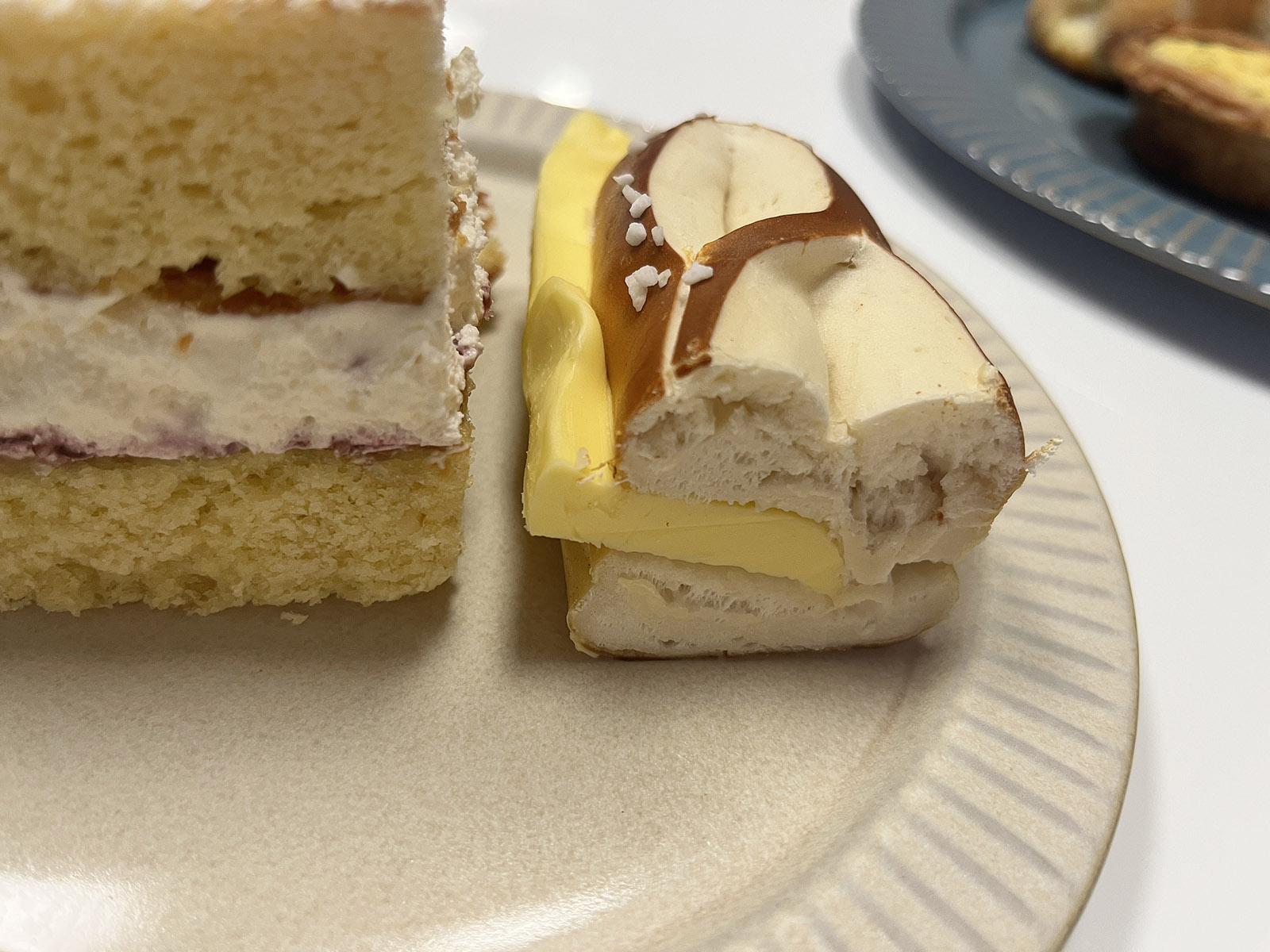 콘파이는 특별히 기억에 남지 않았고 잠봉 브리오슈는 잠봉뵈르를 좋아하시면 저것도 좋아하실 가능성이 높을 것 같습니다. 빅토리아 스펀지케이크는 빵이 꽤 단단해서 포크로 누르면 크림이 꾸웩 튀어나오니 잘라서 드시길 권해드립니다.