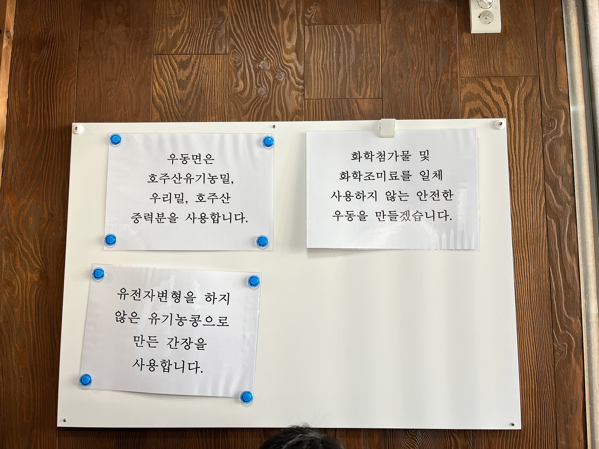 저는 사실 우동의 맛이야 거기서 거기라고 생각합니다. 차이가 있긴 하겠지만 우동이라는 틀에서 벗어나지 못한다는 의미죠. 다른 음식도 마찬가지입니다. 하지만 화학첨가물 및 화학조미료를 일절 사용하지 않는 안전한 우동을 만들겠다, 유전자변형을 하지 않은 유기농 콩으로 만든 간장을 사용한다라고 써붙여 놓은 것, 그리고 주방을 들여다볼 수 있도록 해놓았다는 점에서 사장님의 음식에 대한 사랑과 자부심이 느껴져서 좋았습니다. 근처에 갈 일이 있다면 한 번 식사해 보시길 권해드립니다.