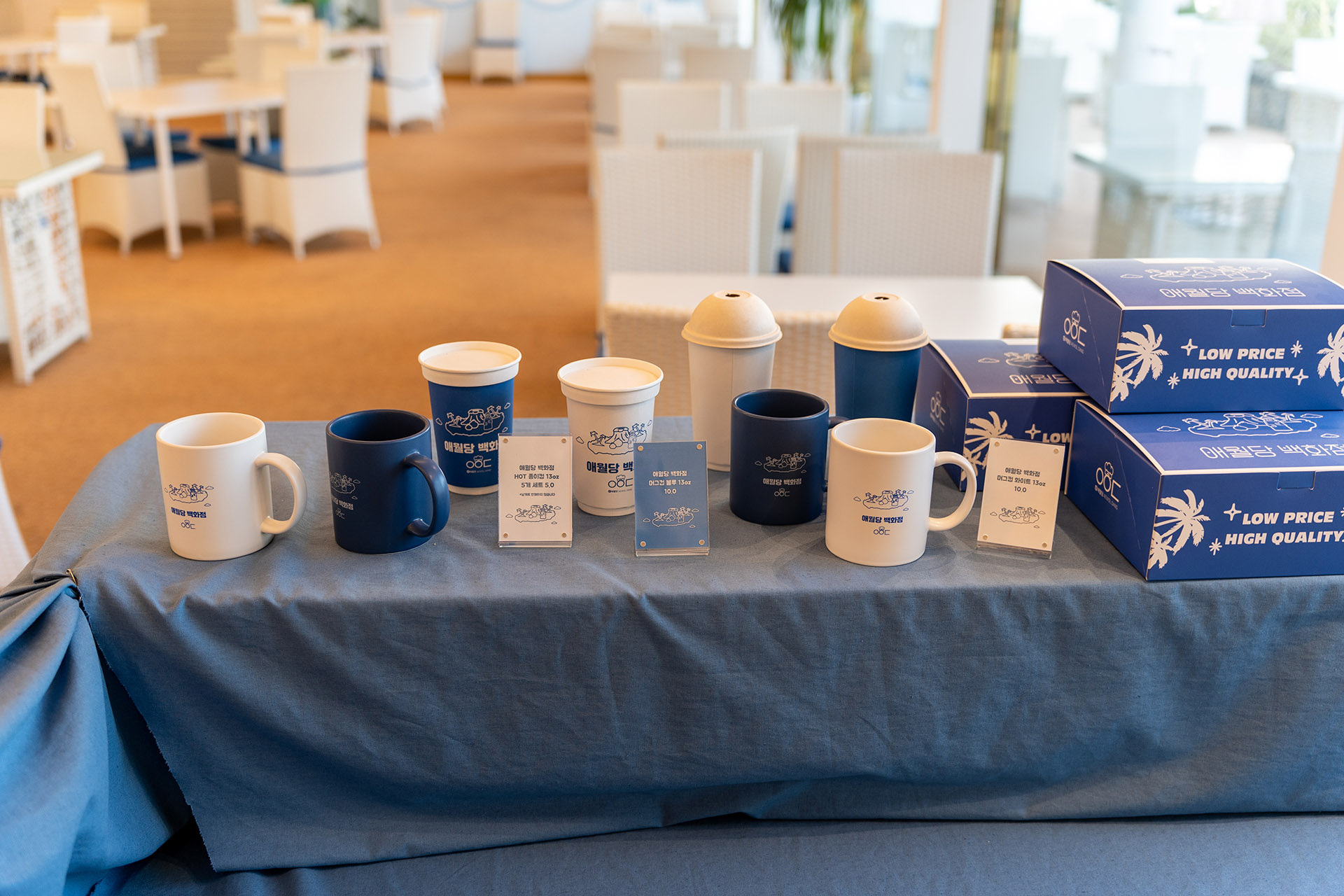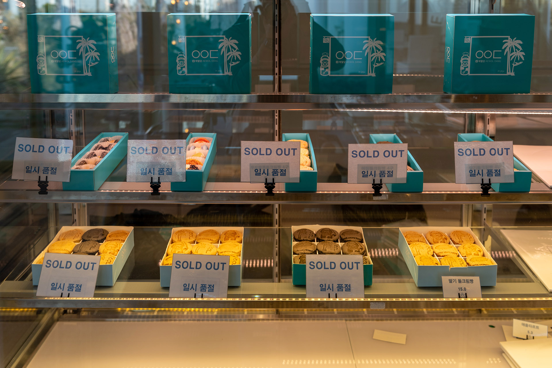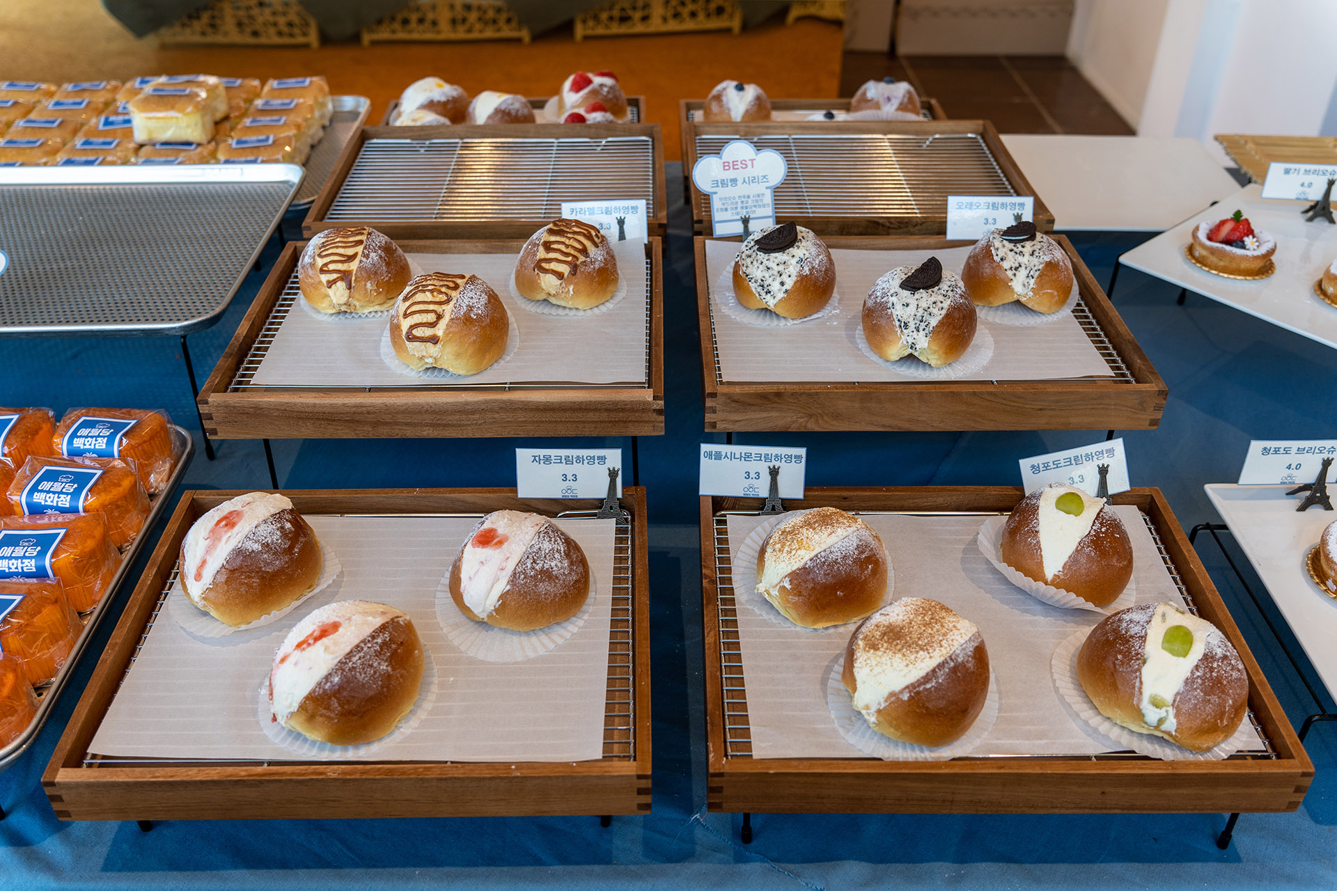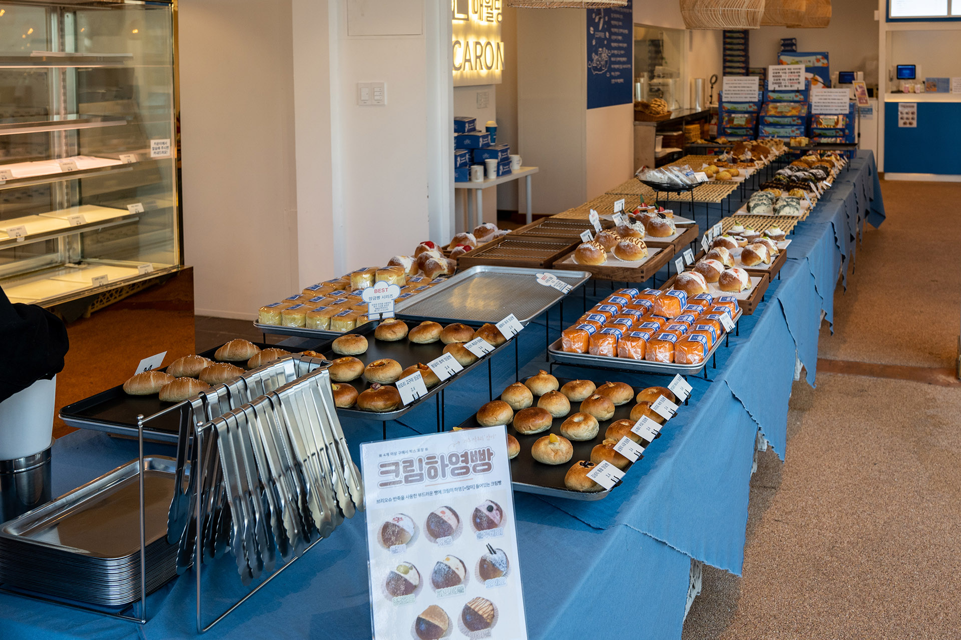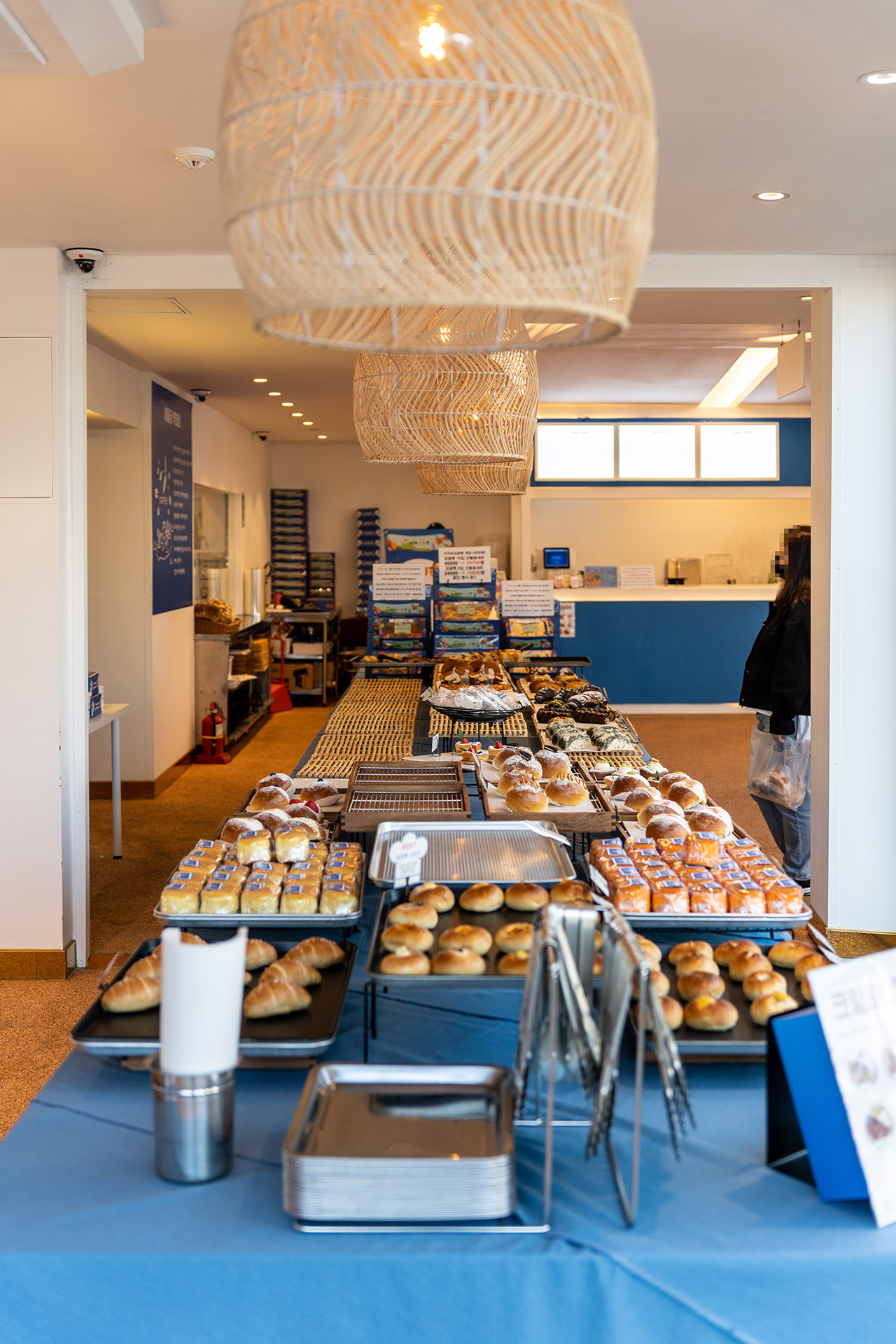 포토존도 마련되어 있고 빵 이외의 굿즈도 팔고 있었습니다. 굿즈도 흰색과 파란색이네요.