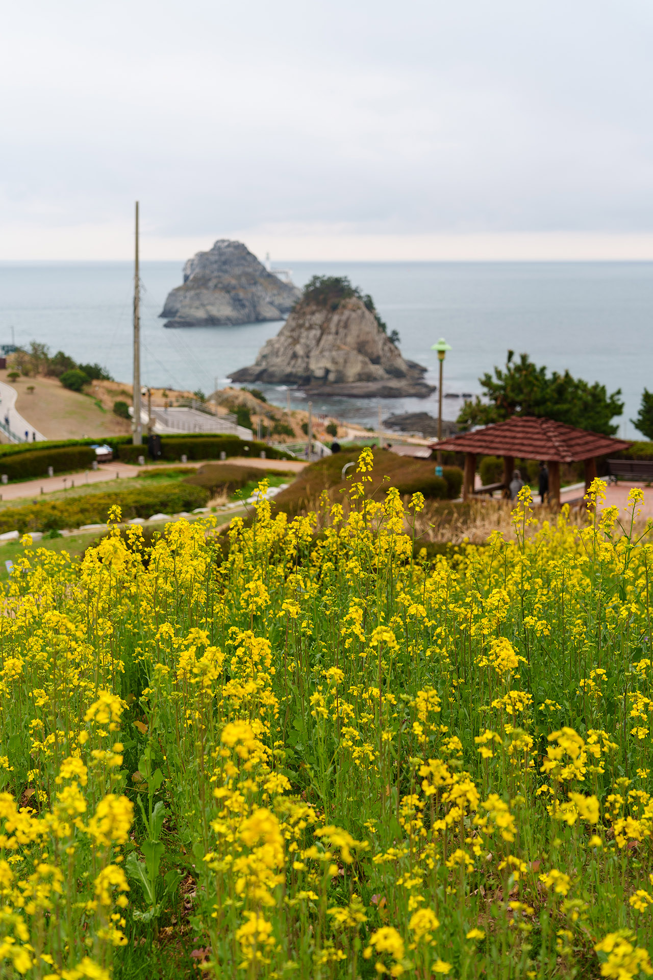 오륙도와 유채꽃. 부산 근처에서 유채꽃은 볼 수 있는 곳이 많습니다. 곧 유채와 벚꽃이 절정을 맞겠네요.