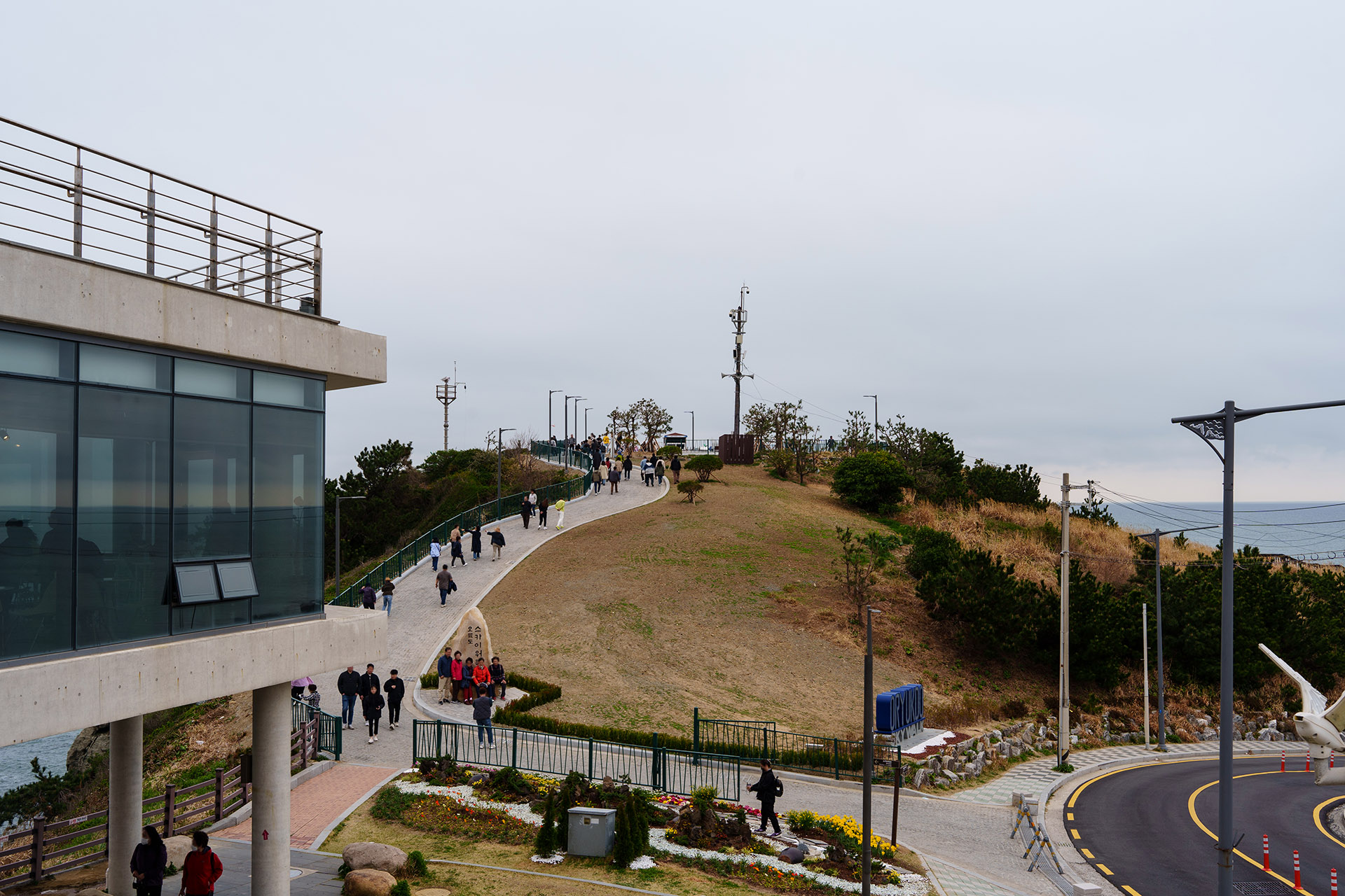 스카이워크 공영 주차장에 주차를 했을 경우, 주차장 바로 왼쪽과 오른쪽이 해맞이공원과 스카이워크입니다. 해녀촌 주차장에 주차를 할 경우에는 꽤 걸어서 올라와야 한다는 단점이 있는데요, 올라오는 길도 좋고 아래쪽에서 보는 오륙도는 상당히 가깝기도 하거니와 위에서 보는 오륙도의 느낌과도 아주 많이 다르기 때문에 제대로 오륙도를 보고 싶다면 아래쪽에 주차를 하는 것도 좋은 방법입니다.