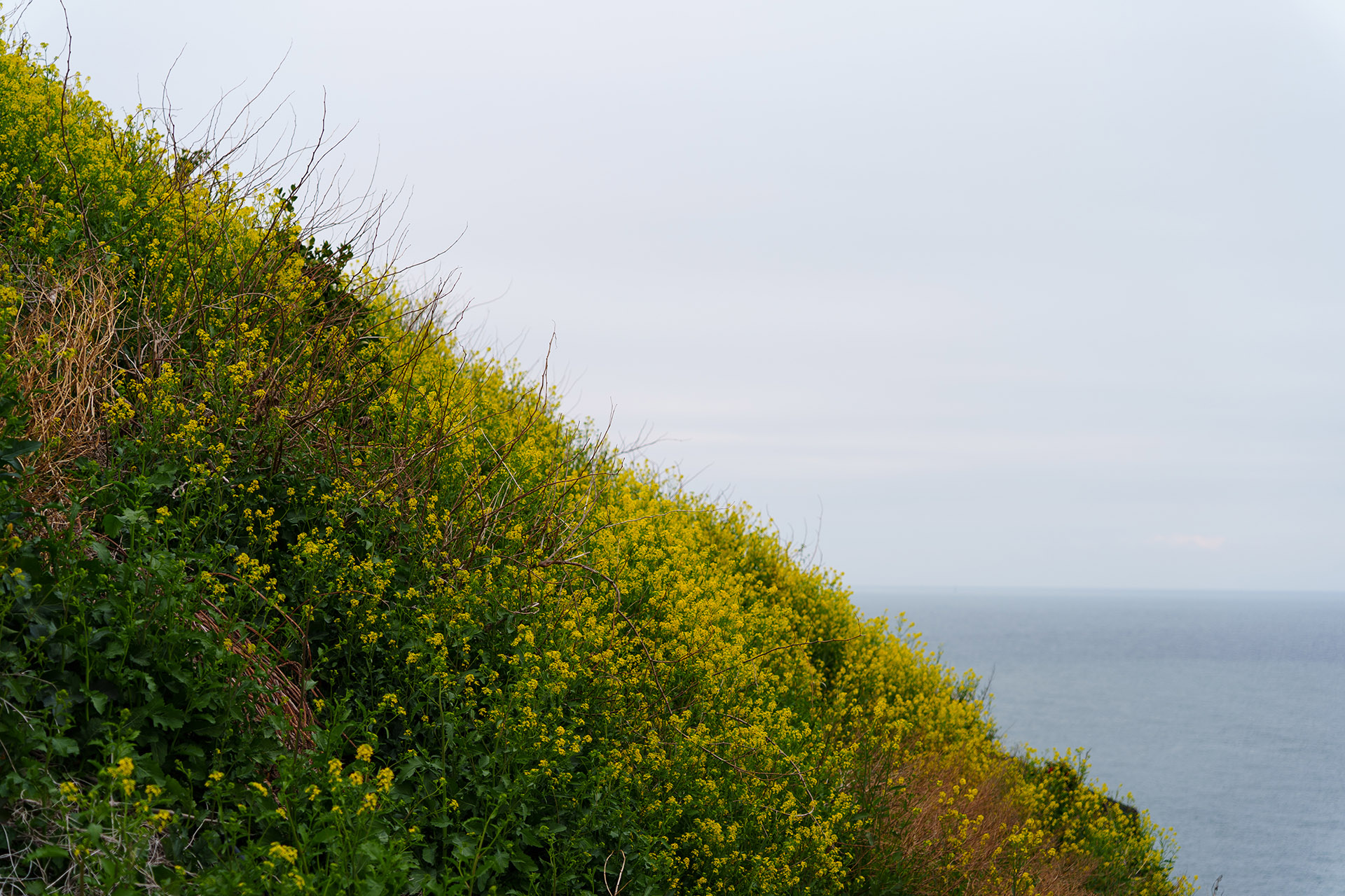 경사로에 핀 유채꽃. 날씨가 좋았다면 예뻤을 텐데 저녁부터 비가 올 예정이라 많이 흐려서 아쉽습니다.