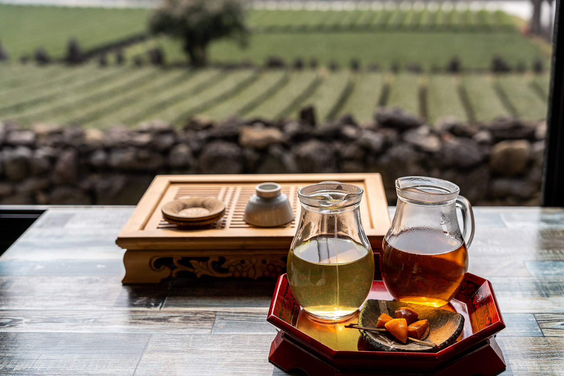 다실에서는 녹차와 황차를 마실 수 있습니다. 우선은 바깥을 더 둘러보도록 할까요.