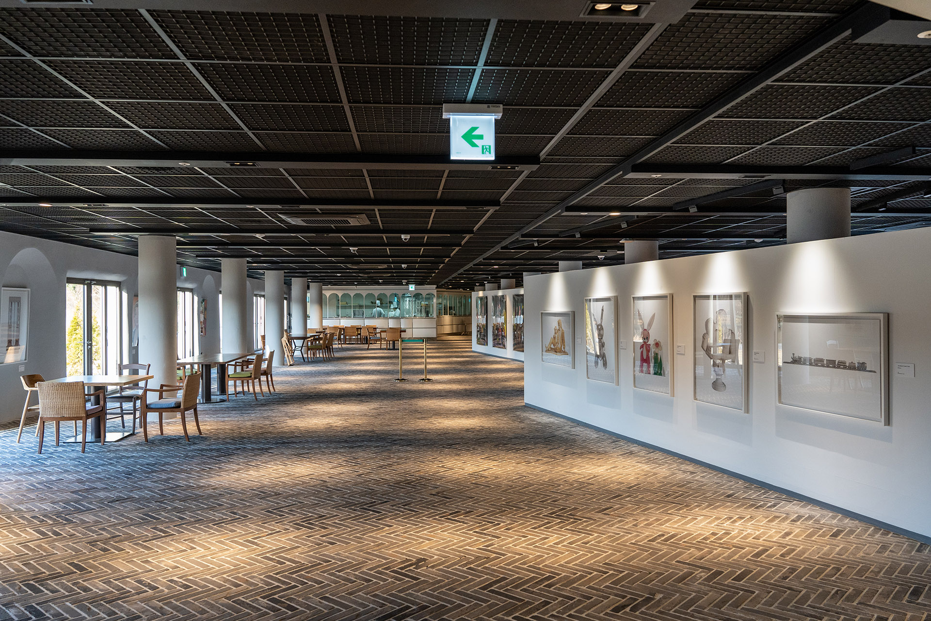 카페와 편의샵을 가기 위해서는 갤러리를 통과해야 합니다. 갤러리 운영시간은 07:00 - 22:00입니다. 이외의 시간에 갤러리에 출입하게 되면 경보가 울린다고 하네요. 어차피 그 시간에는 편의샵도 운영을 안 하니 지나갈 일은 딱히 없긴 하겠습니다.