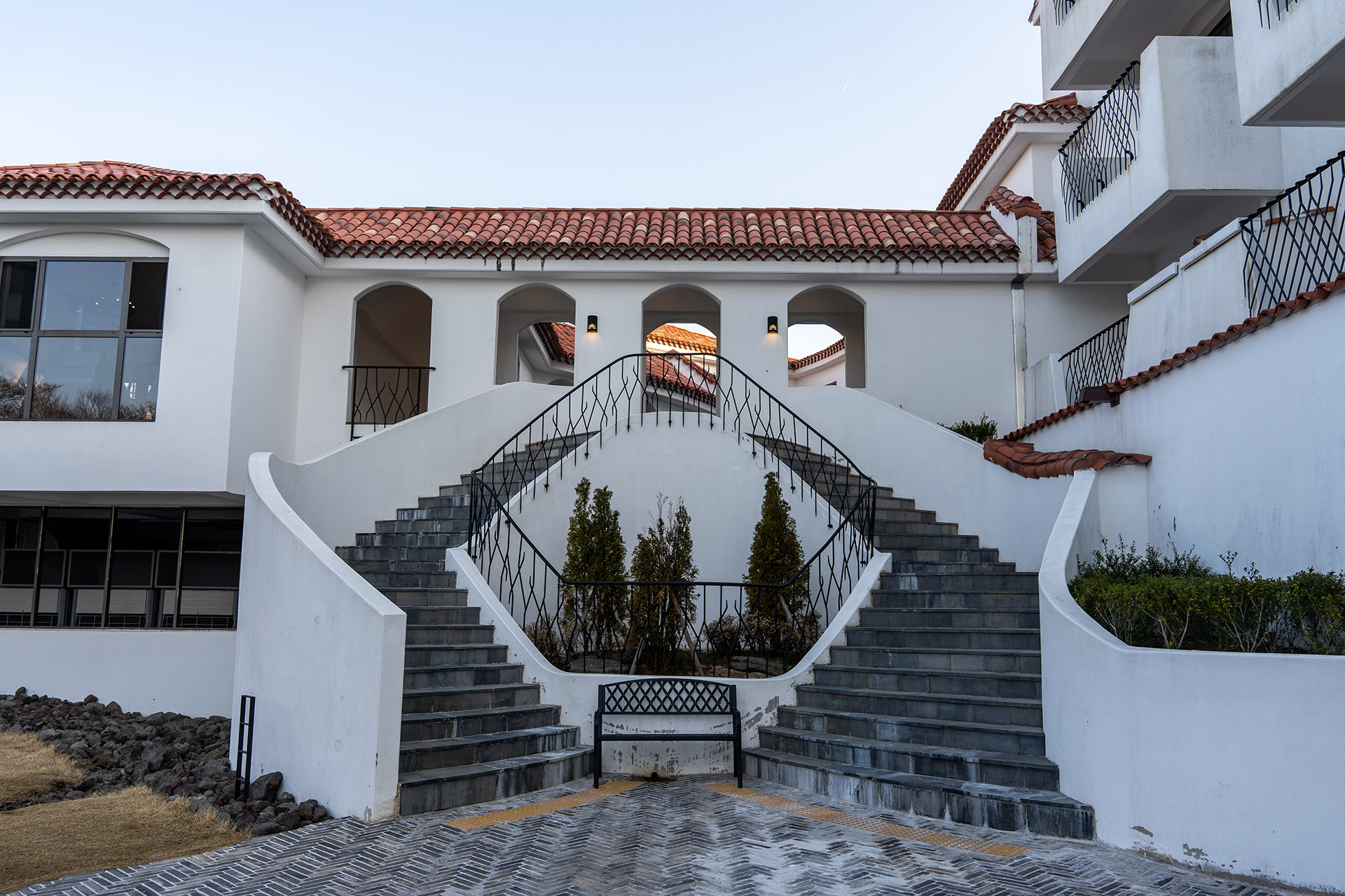 전 아침에 산책하는 것을 좋아해서 이른 아침부터 카메라를 들고 나섰습니다. 전날 호텔 내부를 전혀 둘러보지 못했기도 하고요. 프런트 뒤쪽으로 이동하면 포레스트 가든이라고 정원이 나옵니다. (이 쪽 방향으로 가려면 카드키가 필요하니 챙겨서 나오시거나 프런트에 임시 키를 요청하세요.) 포레스트 가든은 그리 넓지 않습니다. 산책을 하기에는 턱없이 좁은 공간입니다. 그리고 그 바로 옆에는 피트니스가 있습니다.