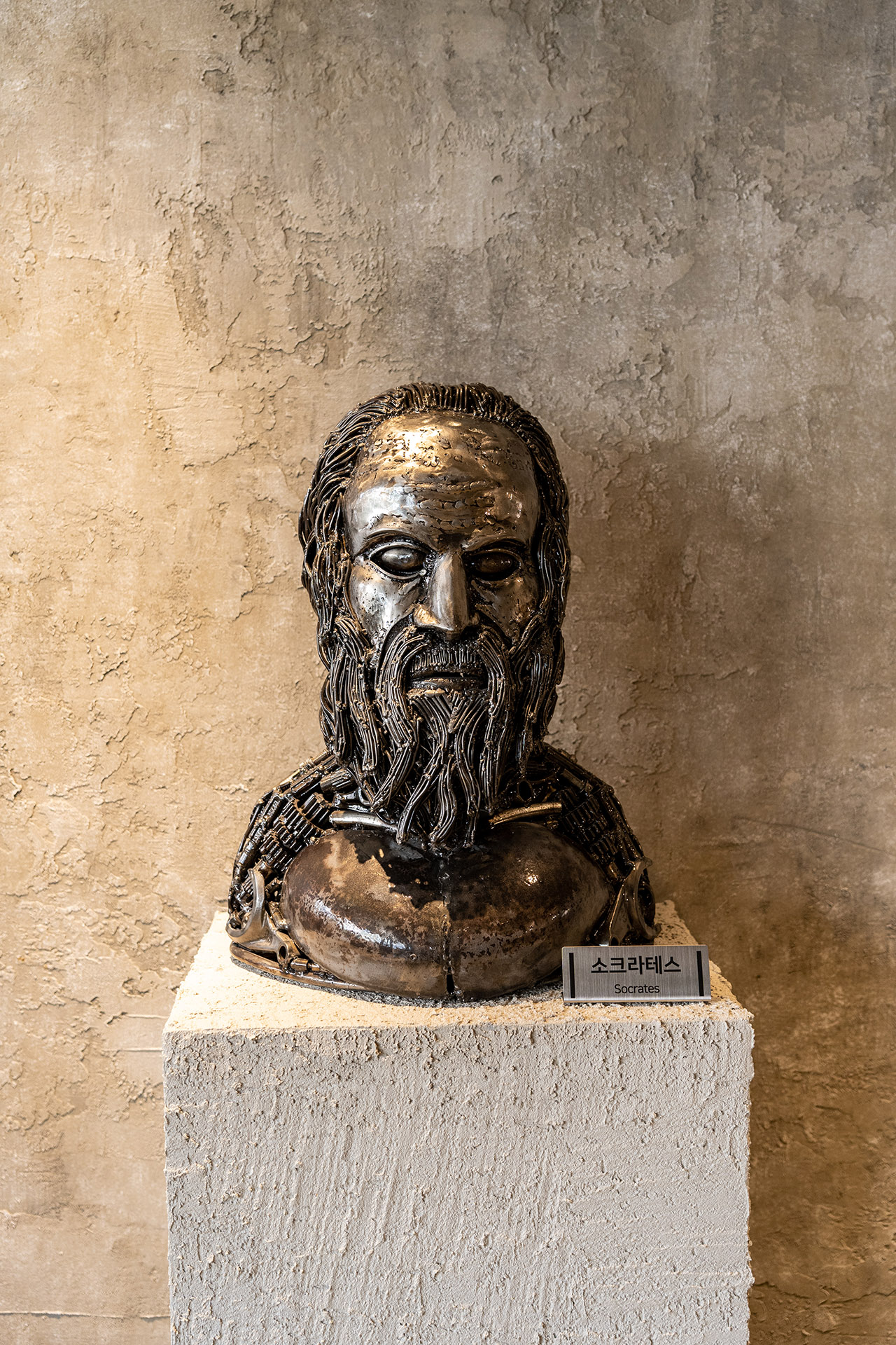 중앙의 뚫린 곳을 통해 2, 3층을 내려다볼 수 있습니다. 조각상도 여럿 있는데요, 아테네 학당이라는 이름에 맞게 아테네 여신상과 아테네 최고의 유명인사, 소크라테스와 플라톤의 흉상도 있습니다.