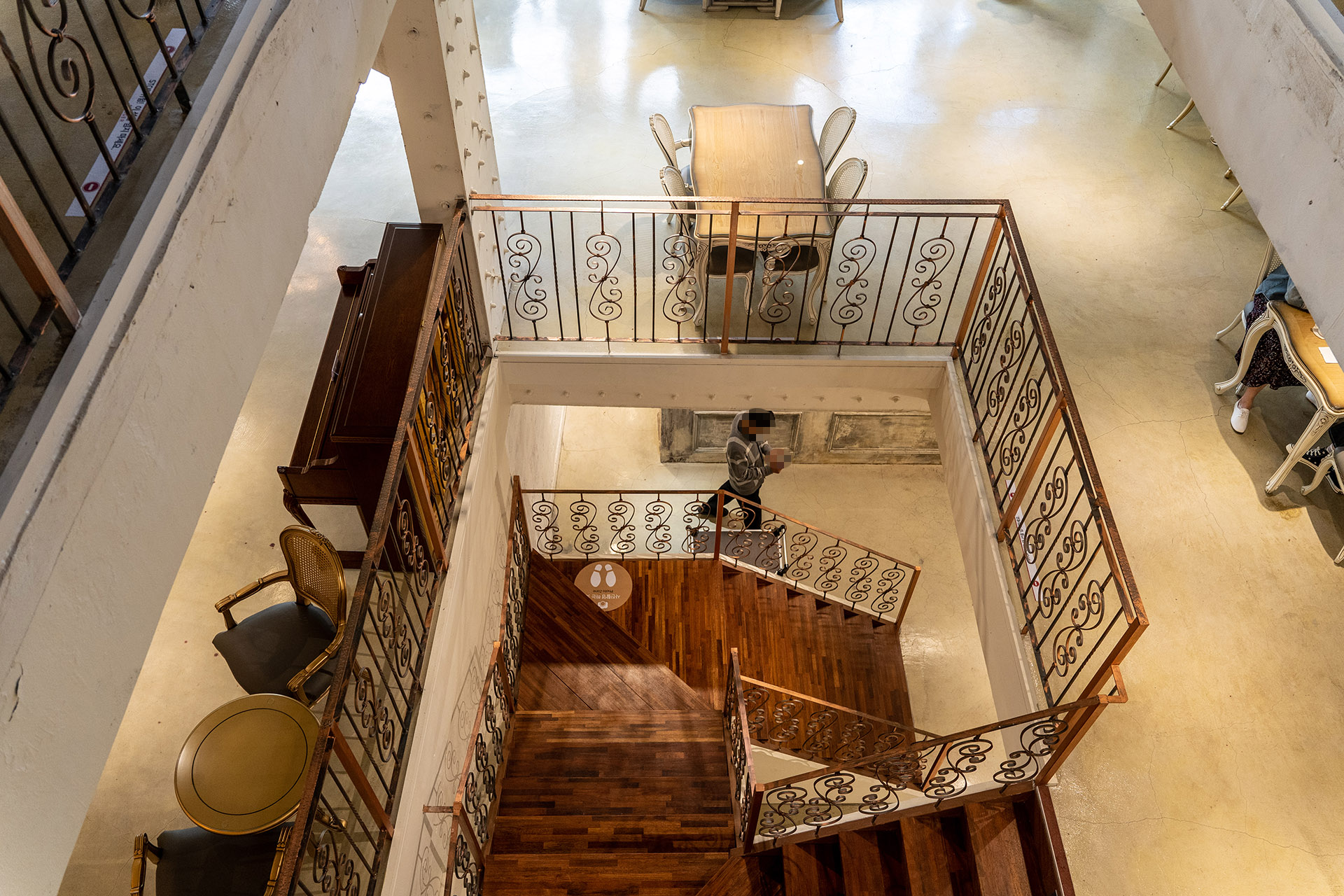 4층으로 가는 계단은 구석 벽에 있습니다. 꽤 좁으니 엘리베이터를 타시는 것을 추천드립니다. 유럽의 성당 두오모나 쿠폴라에 올라갔던 기억이 날 정도로 좁고 불편한 계단입니다..