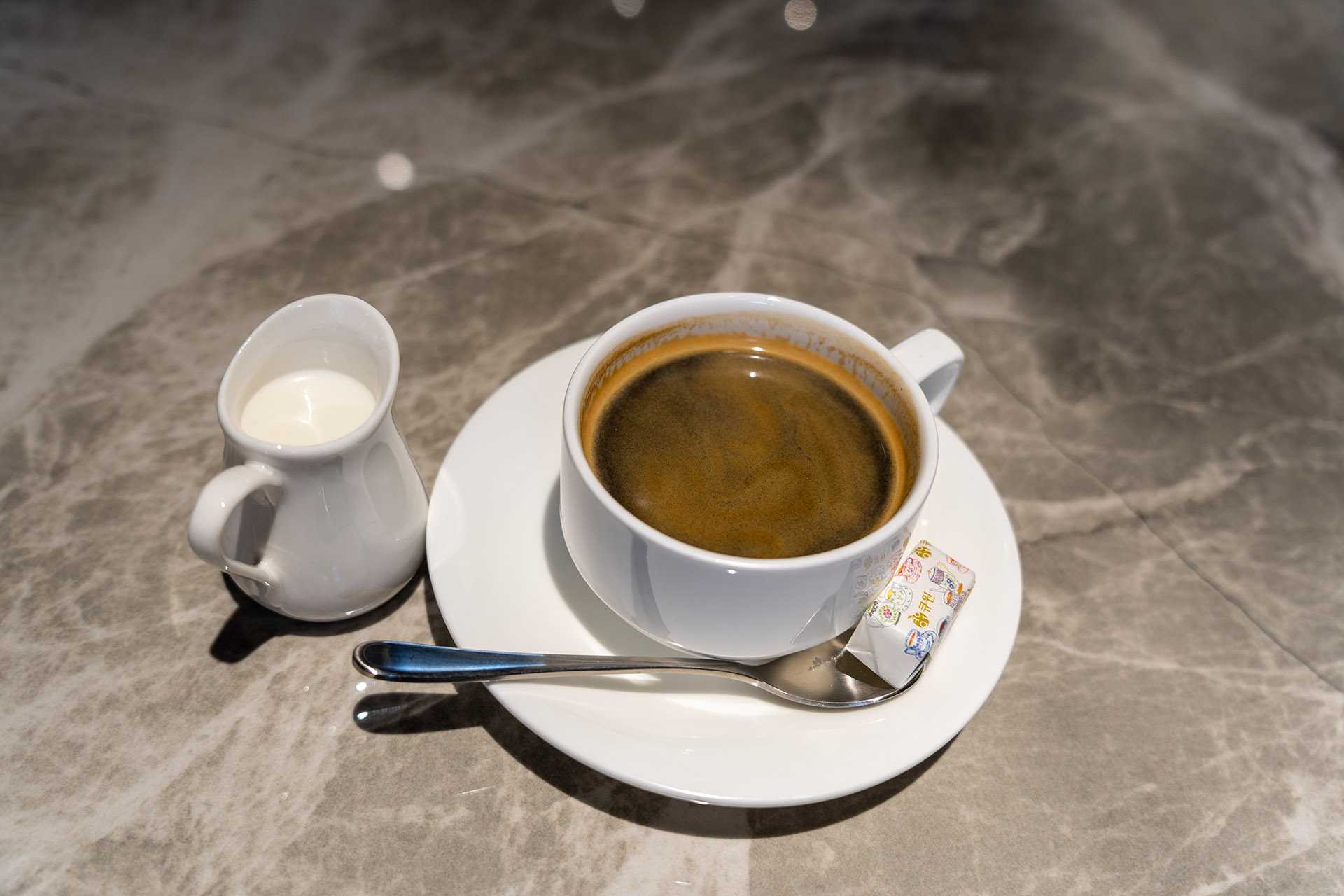 밀다원 밀크커피와 카페라테입니다. 밀다원 밀크커피는 플레인/흑임자/돌체크림 중 선택할 수 있습니다. 돌체크림이 달다고 해서 선택했습니다. 그냥도 맛을 보고 그 후에 크림을 넣어서 마셔보라고 안내를 받았습니다. 그리고 각설탕이 함께 제공이 되니까요, 필요하다면 넣어서 마시면 됩니다. 개인적으로는 커피를 진하게 마시는 것을 좋아하지만 그보다 조금 더 진해서 신중히 선택하셔야 할 것 같네요. 카페라테는 평범했고요, 라테아트가 아주 귀여웠습니다. 라테 치고는 폼이 좀 두꺼운 게 아닌가 싶긴 했지만 무난한 맛이었습니다.